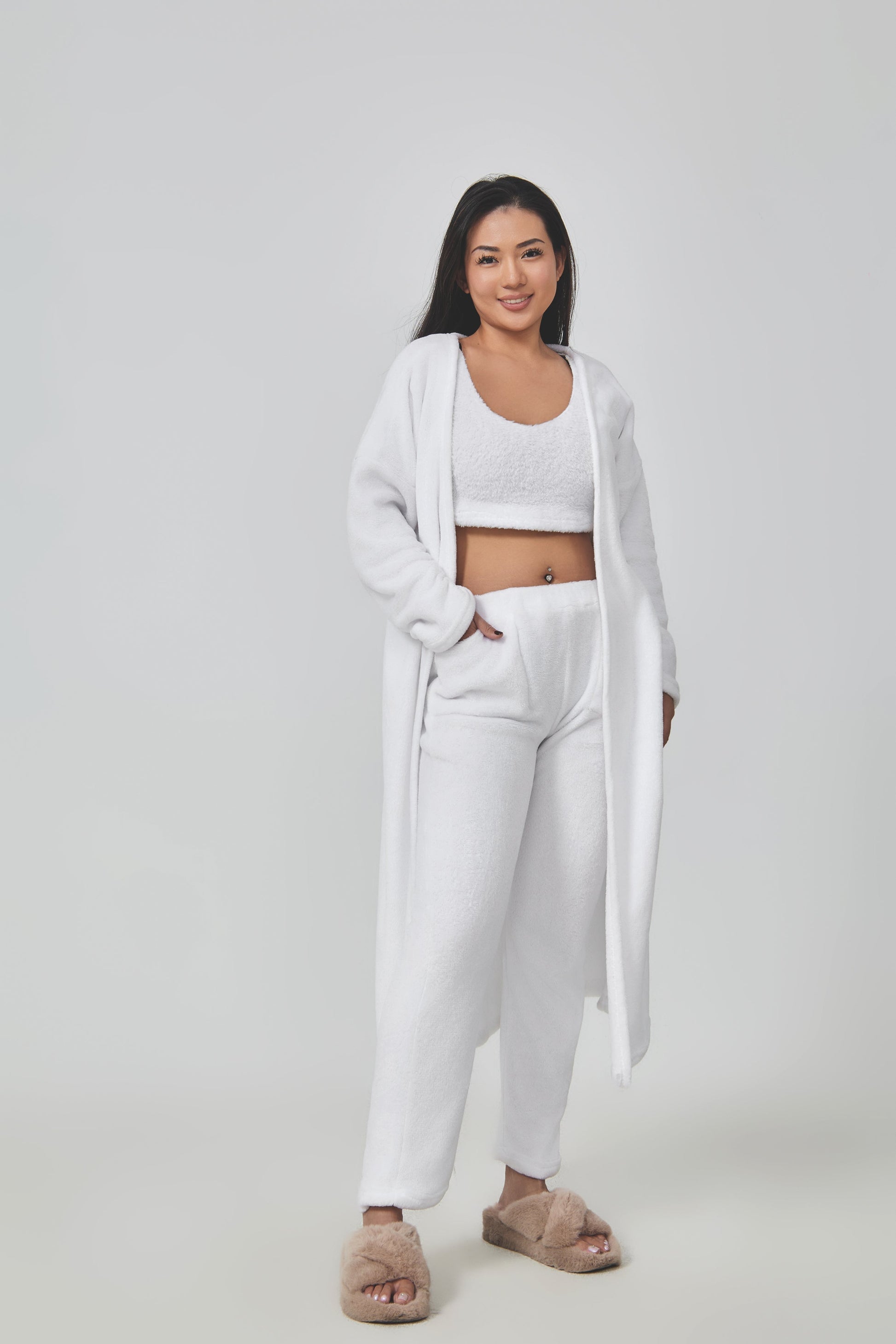 Parfait pour les moments de détente à la maison, cet ensemble s’adapte également aux sorties décontractées. Son design minimaliste et élégant en fait un incontournable du dressing hivernal.